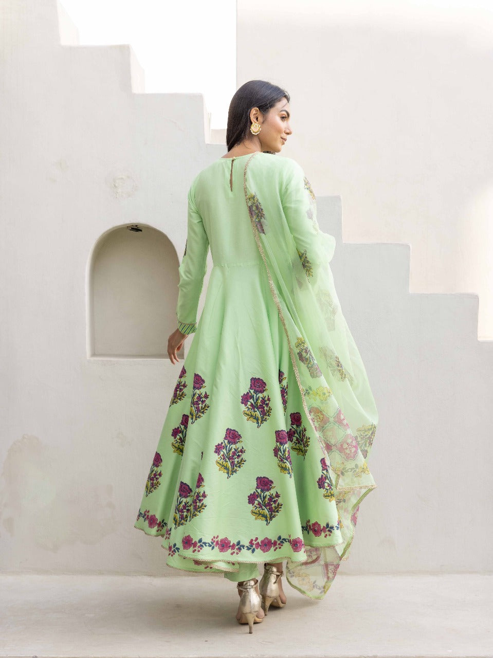 Blooming Grace Anarkali Set Mint Green & Ivory White